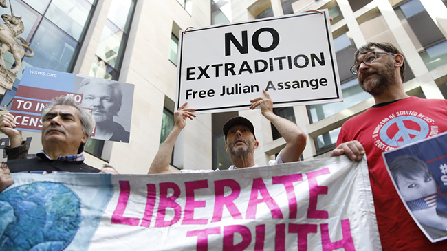 Plus tôt, en signe de soutien à Julien Assange, une trentaine de personnes s’étaient rassemblées devant le tribunal en brandissant des pancartes réclamant : «Ne tuez pas le messager», «Pas d'extradition» et «Liberté d'expression».