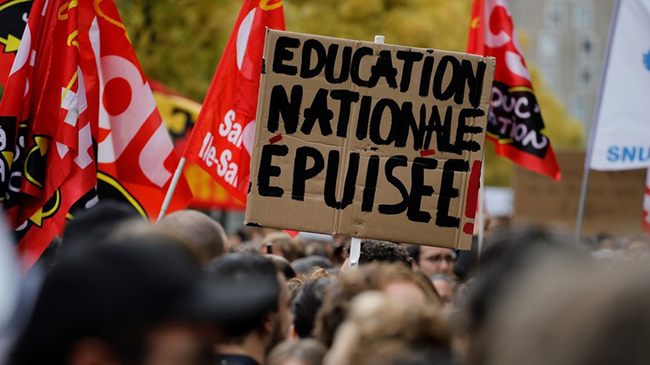 «Combien de Christine Renon devront donner leur vie ?» : tel était l'un des slogans de la mobilisation à Bobigny le 3 octobre, rassemblant des milliers de personnes, le jour des obsèques de la directrice d'école Christine Renon. Celle-ci s'était suicidée le 21 septembre dans son école, à Pantin, après avoir dénoncé les pressions subies et ses conditions de travail dans une lettre.
