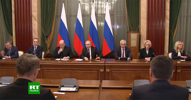 Le président russe Vladimir Poutine a rencontré le nouveau gouvernement, ce 21 janvier, quelques jours après la démission du Premier ministre Dmitri Medvedev. «Le [futur] gouvernement est très équilibré», s'est félicité le chef d'Etat, annonçant que de nombreux membres du gouvernement sortant restaient à leur poste.