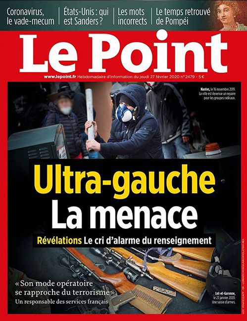 Le journal Le Point, hebdomadaire de droite qui survit grâce aux perfusions d'argent public, consacre son dernier numéro à la « menace d'ultra-gauche ». Il réactive le mythe d'une « menace terroriste d'ultra gauche » pour justifier une répression encore plus forte contre les manifs. Une semaine seulement après l'attentat d'extrême droite qui a tué 9 personnes en Allemagne, et alors que les agressions fascistes se multiplient à Nantes comme ailleurs, la priorité de cette presse est de diffamer les luttes sociales.